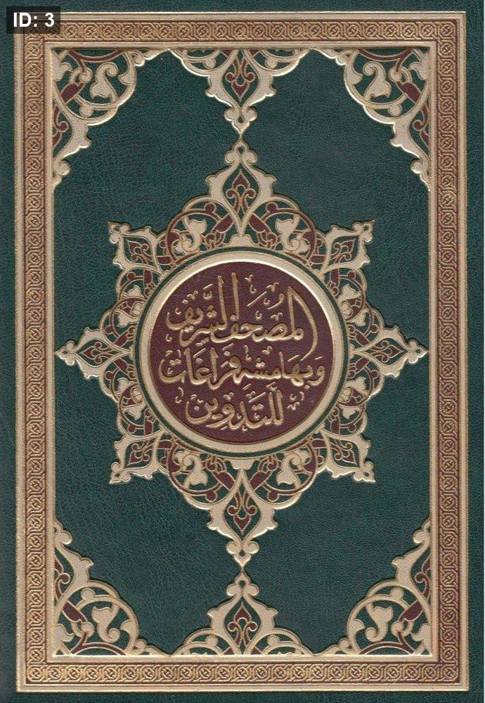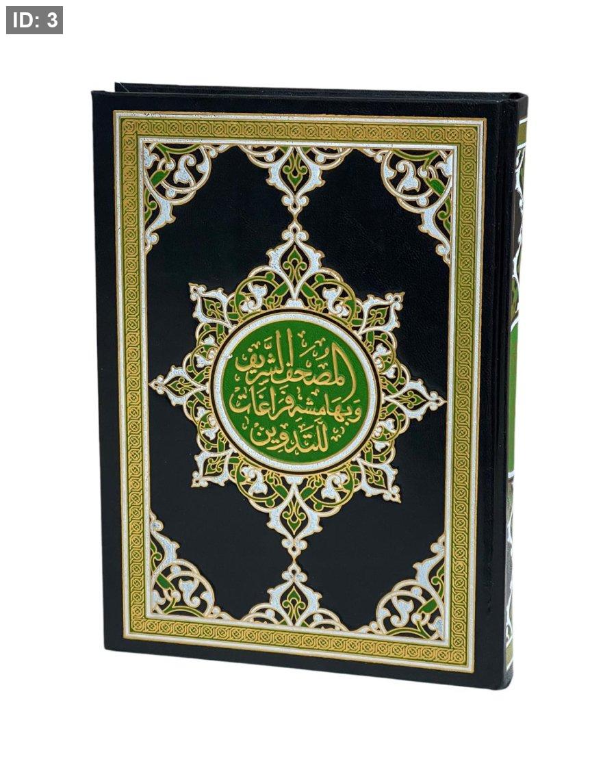 المصحف الشريف وبهامشه فراغات للتدوين. كُتبَ هذا المصحف وضُبطَ على ما يُوافق رواية حفص عن عاصم. مُجهز بأسطر على الهوامش للتدوين (قراءات وشواهدها-تجويد-متشابهات-مفردات وتفسير..).