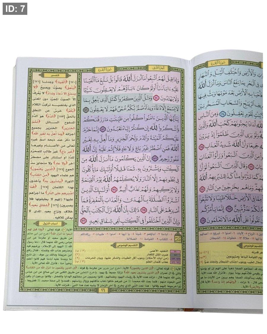 أسباب النزول: توضيح أسباب نزول بعض الآيات في أسفل الصفحة لإعطاء القارئ سياقاً تاريخياً وفهماً أعمق.