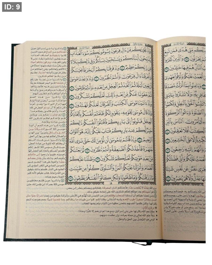 شرح المفردات: يتم شرح الكلمات الصعبة من القرآن وتلوينها بلون مختلف لتمييزها.